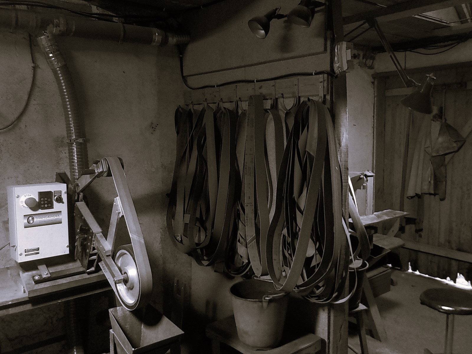 C’est dans cette piece que se trouvent les machines modernes nécessaires à la fabrication de petites séries de couteaux, pour le travail de l’acier et du bois.